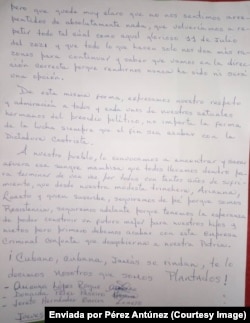 Desde Miami, donde reside, el expreso político Jorge Luis García Pérez, conocido como “Antúnez”, hermano de Loreto Hernández, dio a conocer parte del contenido de la misiva.
